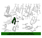 Without sport or collapsible seats, outer, with draped leather, brown. Without sport seats, seat back components, outer, with leather, without vented seat, brown.