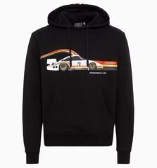 Celebrating ANDIAL, a staple of Porsche racing history, and the iconic 935-L ‘Moby Dick’ race car from the 80’s. Black hoodie with tonal cuffs and hem. Print on the front: ANDIAL logo stripes with the 935-L and its iconic ANDIAL livery. The 935-L won the Daytona 24 Hours in 1983 and finished second in 1984, with numerous other podium finishes throughout its racing history. Print on the back: ANDIAL logo and stripes. Material: 80% cotton, 20% polyester.